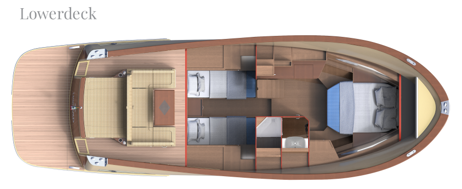 The Lancia 42 is available in both Inboard and Outboard versions. Different layouts are available for both versions: Cruise, Family, and Lounge Cruise.